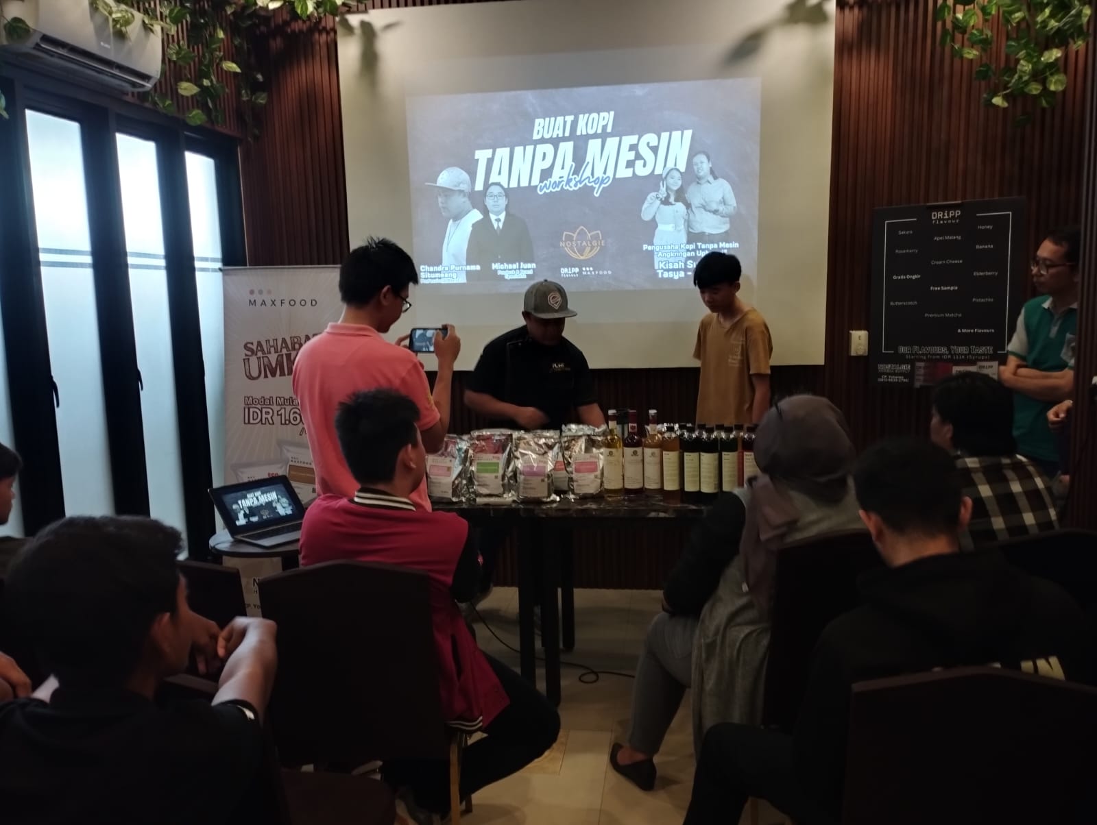 Hadir sebagai pemateri adalah Product dan Brand Specialist, Michael Juan, Profesional Barista, Chandra Purnama Situmeang, dan Pengusaha Kopi Tanpa Mesin Angkringan Uptrend, Tasya dan Nanda. Materi yang disampaikan secara santai dan banyak diberikan praktik.