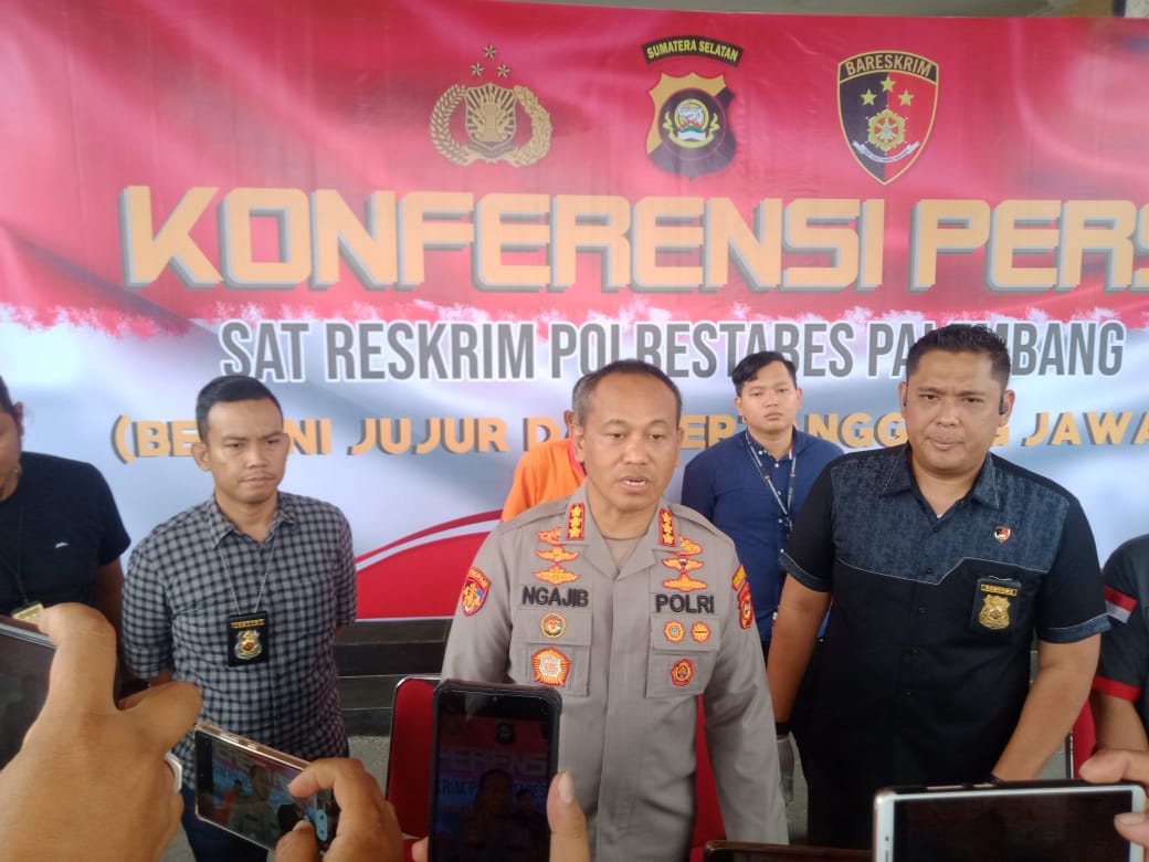 Kapolrestabes Palembang, Kombes Pol Mokhamad Ngajib didampingi Kasat Reskrim, AKBP Haris Dinzah membenarkan pihaknya sudah mengamankan seorang tersangka pengancaman menggunakan senjata tajam.