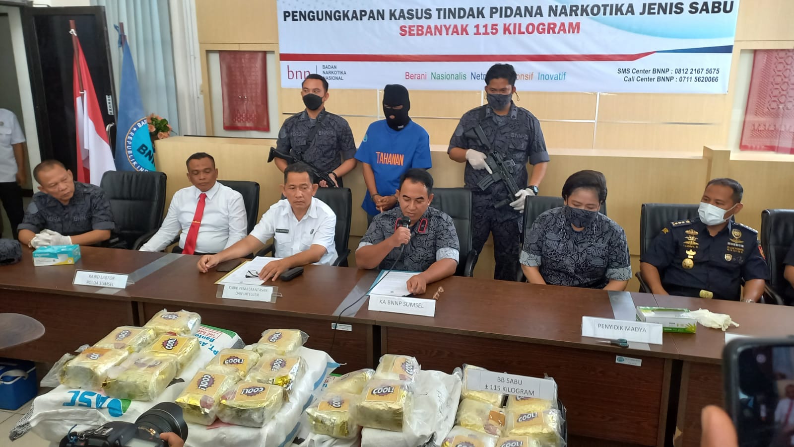 “Kita mendapatkan informasi melalui pengembangan intelijen IT, bahwa akan ada distribusi sabu berasal dari Aceh melalui Pekan Baru, Dumai, lalu langsung dilakukan pengecekan dilapangan. Ternyata terjadi transaksi penyerahan Sabu seberat 115 kilogram (kg) ke wilayah Palembang, Sumsel,” kata Brigjen Pol Djoko Prihadi.