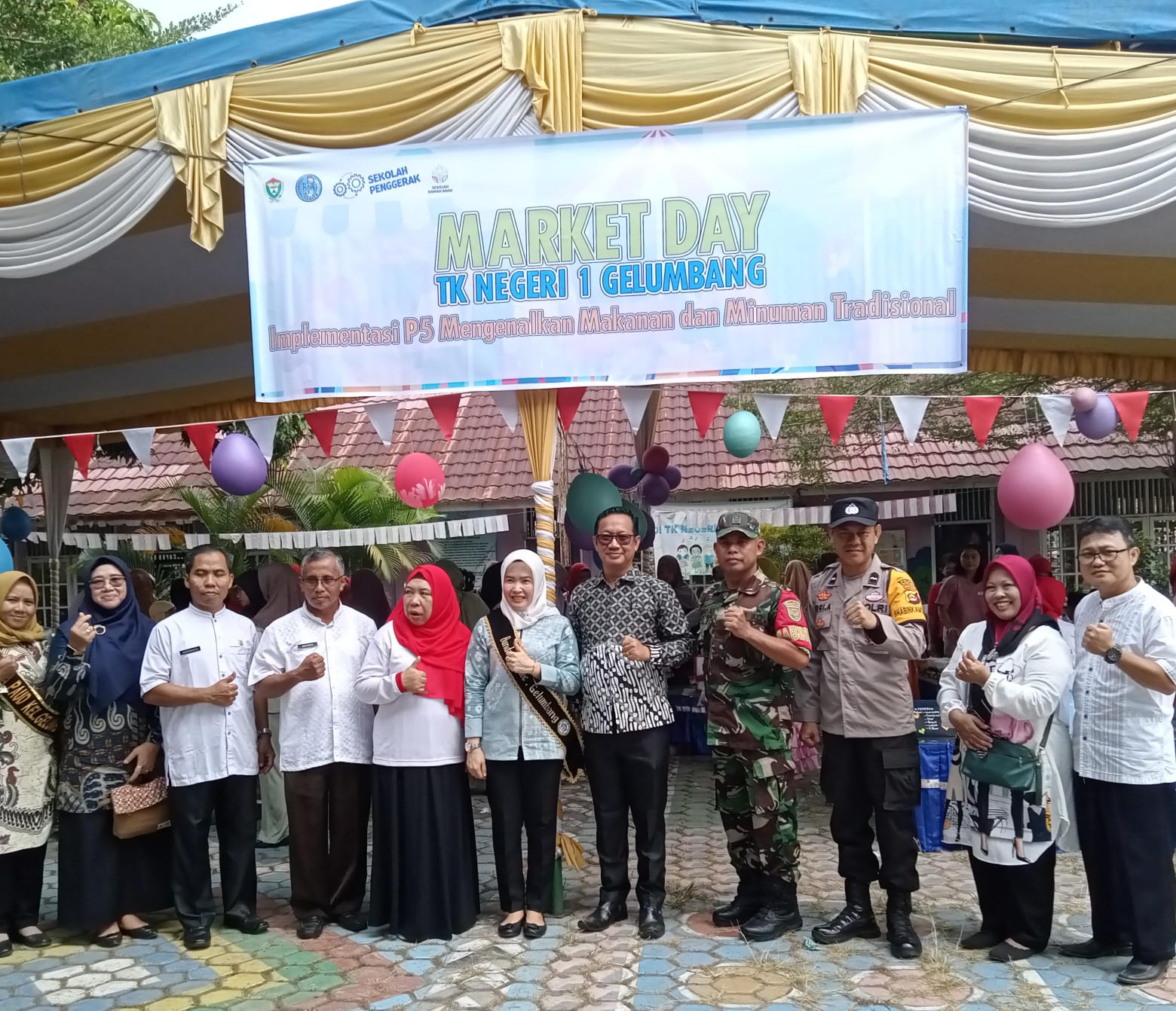 Turut hadir dalam kegiatan Market Day TK Negeri 1 Gelumbang dalam. Implementasi P5 Mengenalkan Makanan dan Minuman Tradisional, ketua Korwil UPTD Diknas Gelumbang, Lurah Gelumbang, Para Kepsek TK/PAUD, Bhabinkamtibmas, Babinsa,RT, serta para wali siswa dan unsur lainnya. (JN)