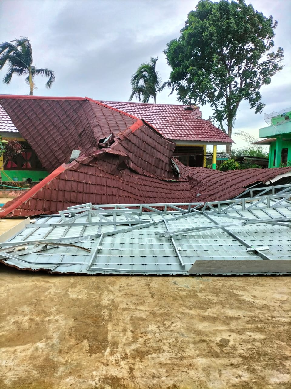 Akibat di terjang puting beliung menyebabkan bagian atap kantor kepala desa rusak parah,sehingga ketika hujan menyebabkan air masuk keruang kerja untuk kantor kepala sekolah SD 6 atapnya juga rusak.