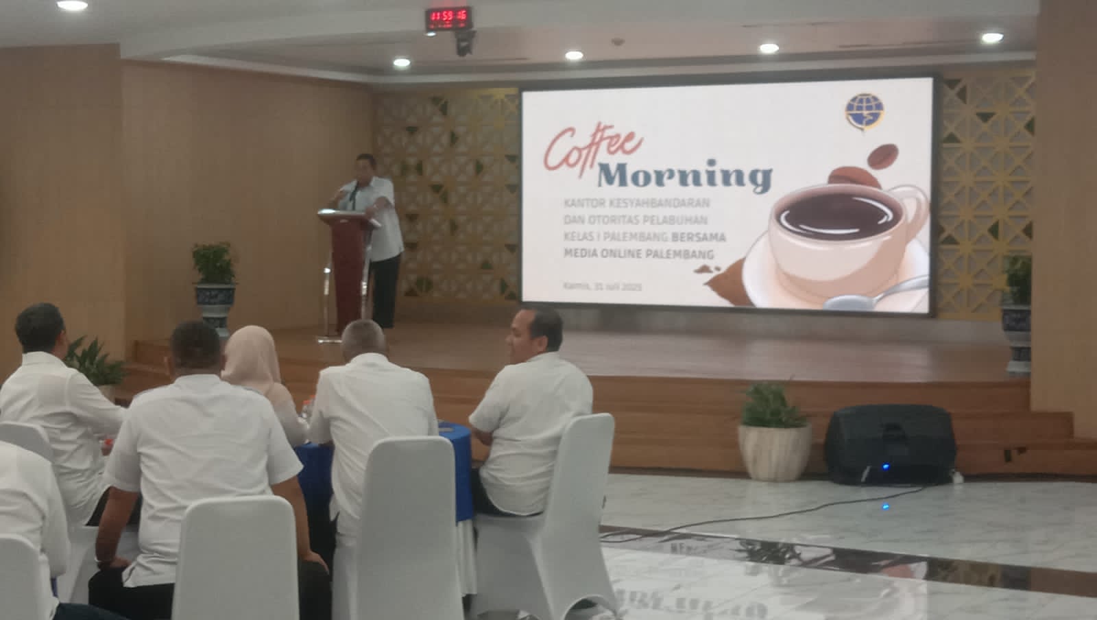 dihadapan awak media dan pihak terkait lainnya dalam kegiatan Coffe Morning bersama KSOP Palembang di gedung serta guna Bank Rakyat Indonesia (BRI) Jalan Arivai Kota Palembang, Kamis (31/7/2025)
