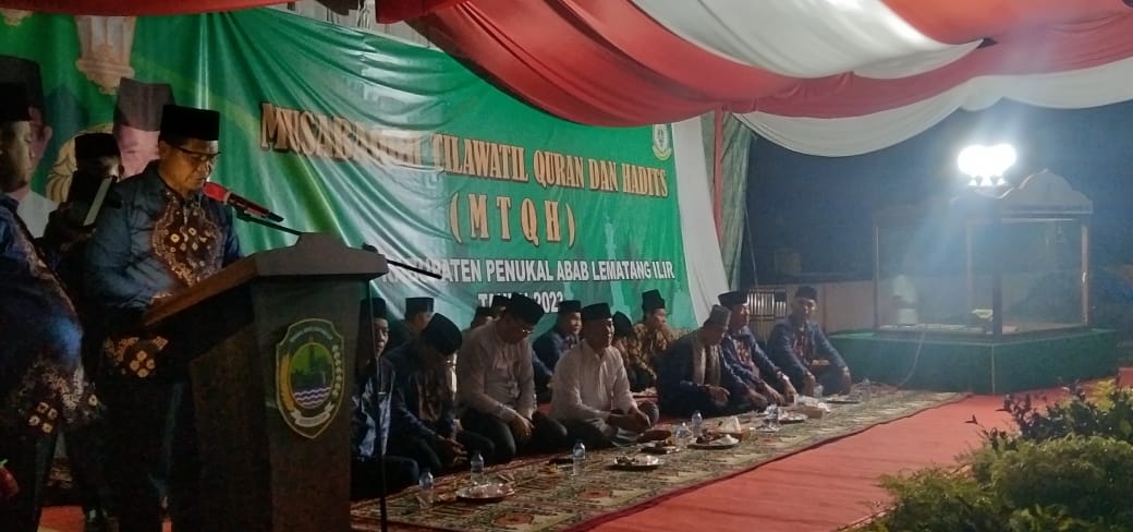 “Ketua LPKQ Drs Mujigori dalam kesempatan ini mengatakan Dalam pembukaan MTQH, PALI. Yang ke dua. puji syukur kehadirat Allah SWT Kita bisa berkumpul pada malam hari ini, dalam kesempatan ini mengatakan pesanya, Alquran itu, memberikan panduan dari semua sektor, dengan Al Qur’an semuanya diatur oleh Al-Qur’an. Menginspirasi dunia sampai sekarang, semuanya ada di Al Qur’an, acara ditutup dengan pembacaan Doa, oleh ustadz Arlin. (Rado L)