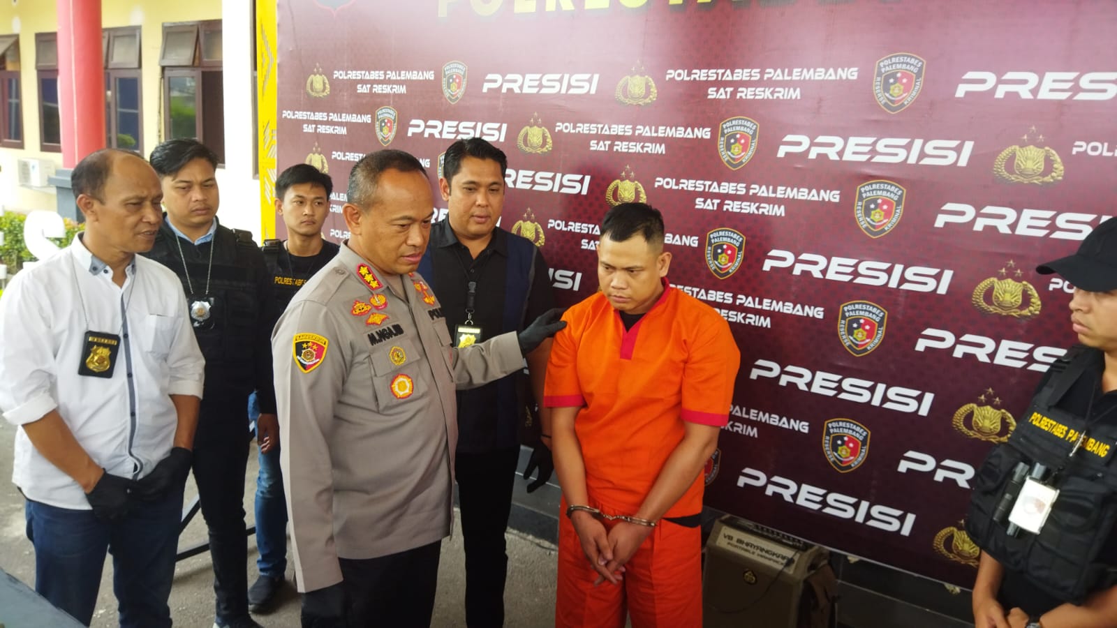 Kapolrestabes Palembang, Kombes Pol Mokhamad Ngajib didampingi Kasat Reskrim, AKBP Haris Dinzah didampingi Kanit Ranmor, AKP Irsan Ismail mengatakan benar kita mengamankan seorang diduga melakukan penipuan menggunakan identitas sebagai anggota Polri yang bertugas di BIN.
