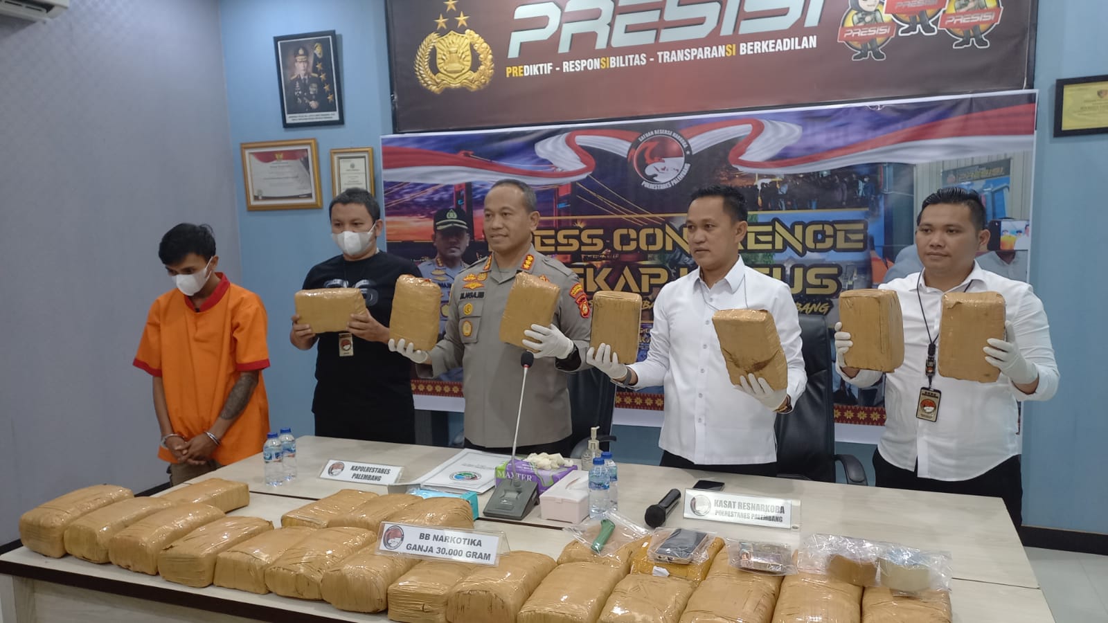 Satres Narkoba Polrestabes Palembang, Gagalkan Pengiriman 30 Kilogram Ganja Asal Medan