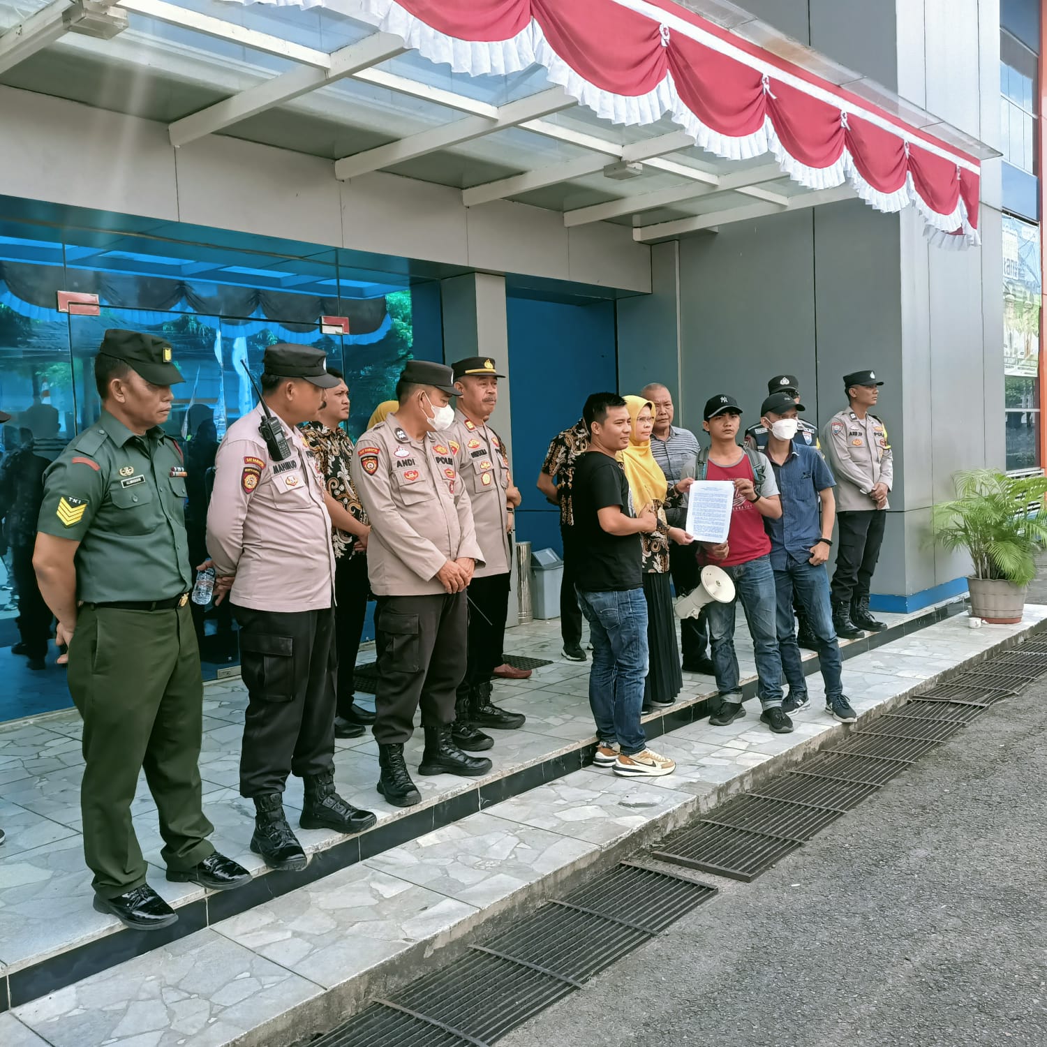 “kami ucapkan terimakasih kepada bapak bapak Polisi dan TNI yang telah mengawal aksi kami dari awal hingga akhir ini”. kata Khalik