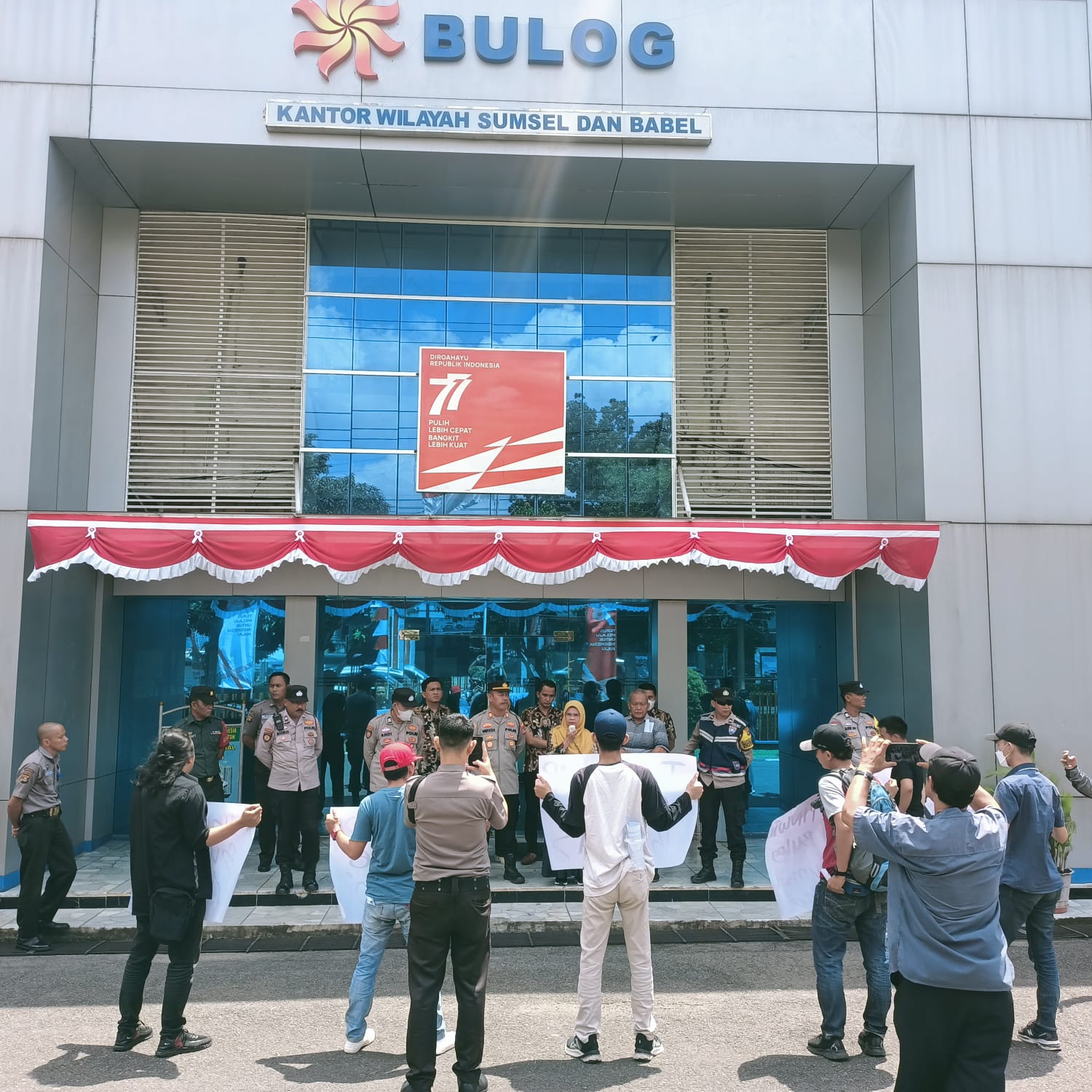 Unjuk rasa di Kantor Bulog Kanwil Sumsel dan Babel berjalan dengan damai dan dikawal ketat oleh jajaran aparat dari Kapolrestabes Palembang dan TNI.