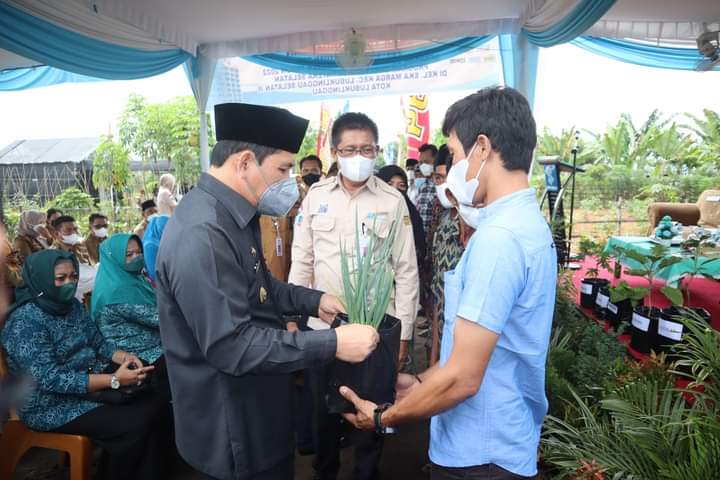 LUBUKLINGGAU|PencanangNews.co.id-Wali Kota Lubuklinggau, H SN Prana Putra Sohe didampingi Ketua TP PKK Hj. Yetti Oktarina Prana menghadiri penyerahan bantuan CSR Gerakan Sumsel Mandiri Pangan (SMP) Tahan 2022 Program Gubernur Sumatera Selatan (Sumsel) di Kelurahan Eka Marga Kecamatan Lubuklinggau Selatan II, Kota Lubuklinggau, Senin (21/2/2022).